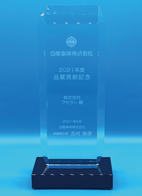 日産車体株式会社様より『品質感謝状』を受賞致しました。 今後もお客様のご期待に沿えるように努めて参ります。