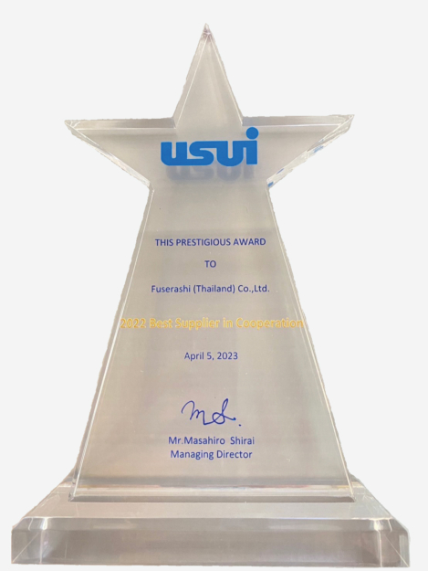 2023.04.05 アワード FUSERASHI(THAILAND)CO., LTD USUI International Corporation (Thailand) Ltd.様より「Best Supplier賞」受賞 FUSERASHI(THAILAND)CO., LTDがUSUI International Corporation (Thailand) Ltd.様より「Best Supplier賞」を受賞致しました。 今後もお客様のご期待に沿えるように努めて参ります。 アワード一覧へ ニュース一覧へ