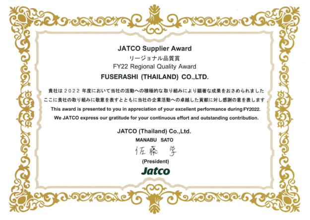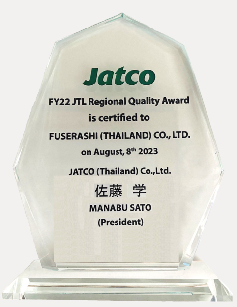 2023.08.08 アワード FUSERASHI(THAILAND)CO., LTD. JATCO(Thailand)Co.,Ltd.様より『Regional Quality Award』受賞 FUSERASHI(THAILAND)CO., LTD.がJATCO(Thailand)Co.,Ltd.様より『Regional Quality Award』を受賞致しました。 今後もお客様のご期待に沿えるように努めて参ります。 アワード一覧へ ニュース一覧へ