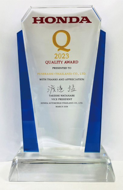 2024.03.27 アワード FUSERASHI(THAILAND)CO., LTD Honda Automobile (Thailand) Co., Ltd. 様より「Quality Award賞」受賞 FUSERASHI(THAILAND)CO., LTDがHonda Automobile (Thailand) Co., Ltd. 様より「Quality Award賞」を受賞致しました。 今後もお客様のご期待に沿えるように努めて参ります。 アワード一覧へ ニュース一覧へ