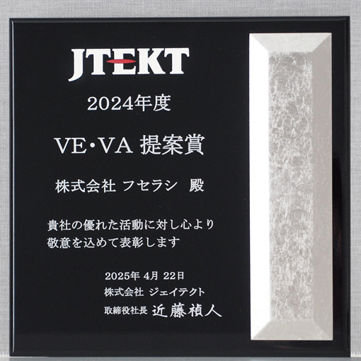 2025.04.22 アワード 株式会社ジェイテクト様より『VE・VA提案賞』受賞 株式会社ジェイテクト様より、『VE・VA提案賞』を受賞致しました。 今後もお客様のご期待に沿えるように努めて参ります。 アワード一覧へ ニュース一覧へ